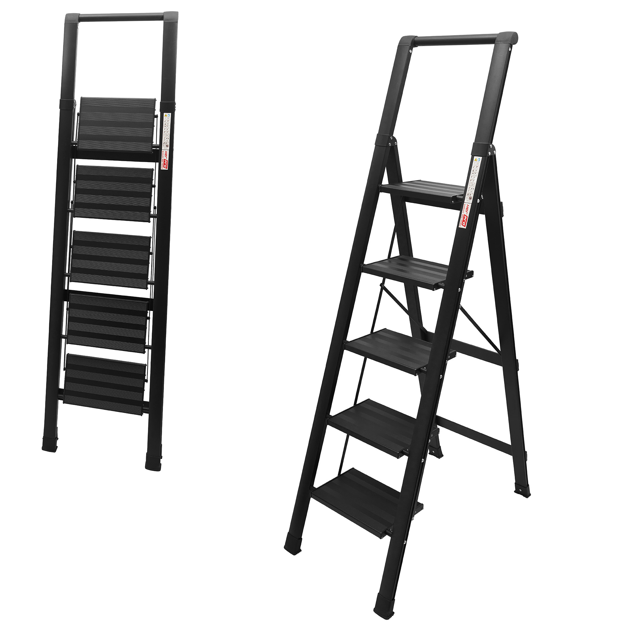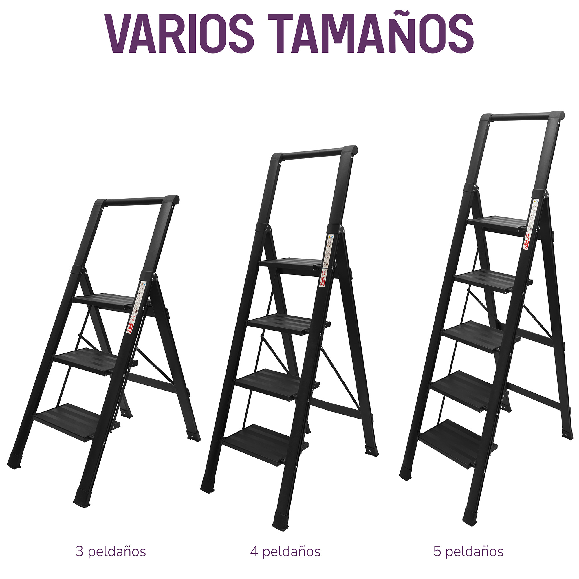 - ✅ Escaleras plegables de aluminio de 3 peldaños, 4 peldaños y 5 peldaños disponibles en color Negro y Plata.
