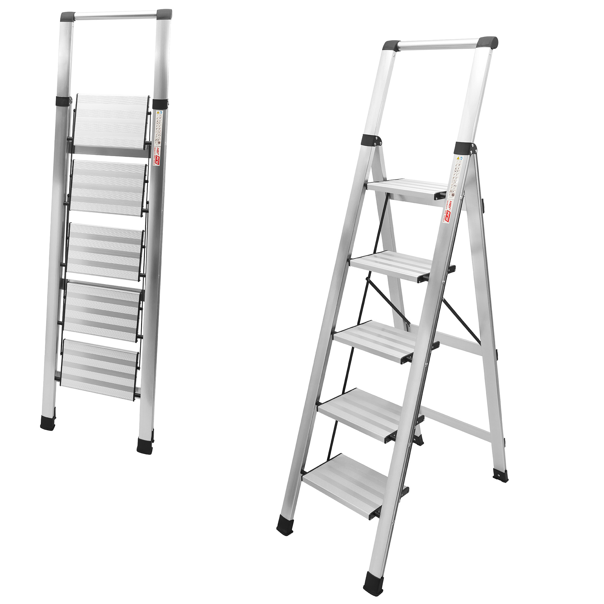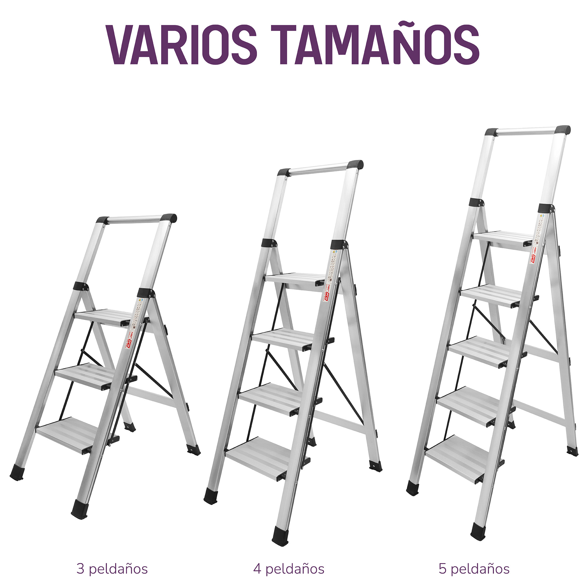 - ✅ Escaleras plegables de aluminio de 3 peldaños, 4 peldaños y 5 peldaños disponibles en color Negro y Plata.